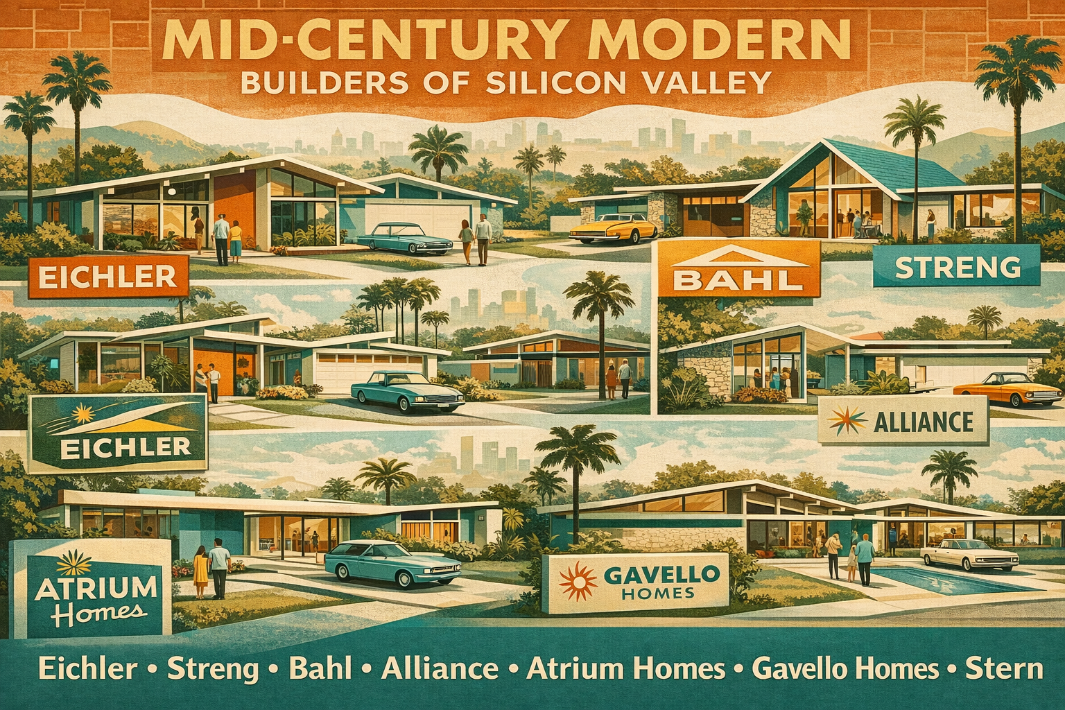 Silicon Valley’s mid-century modern housing stock wasn’t shaped by a single vision—it was built by a handful of influential developers who each interpreted modernism through a slightly different lens. Understanding which builder did what (and where) is essential when evaluating architectural pedigree, long-term value, and buyer demand today. Joseph Eichler’s tract homes set the gold standard for California Modern living in the postwar era, inspiring a wave of other builders who echoed his “indoor–outdoor” ethos. Below is a Property Nerd–level comparison of several builders that continue to define the region’s modernist DNA—plus how The Boyenga Team uses this knowledge to position homes correctly in today’s market.