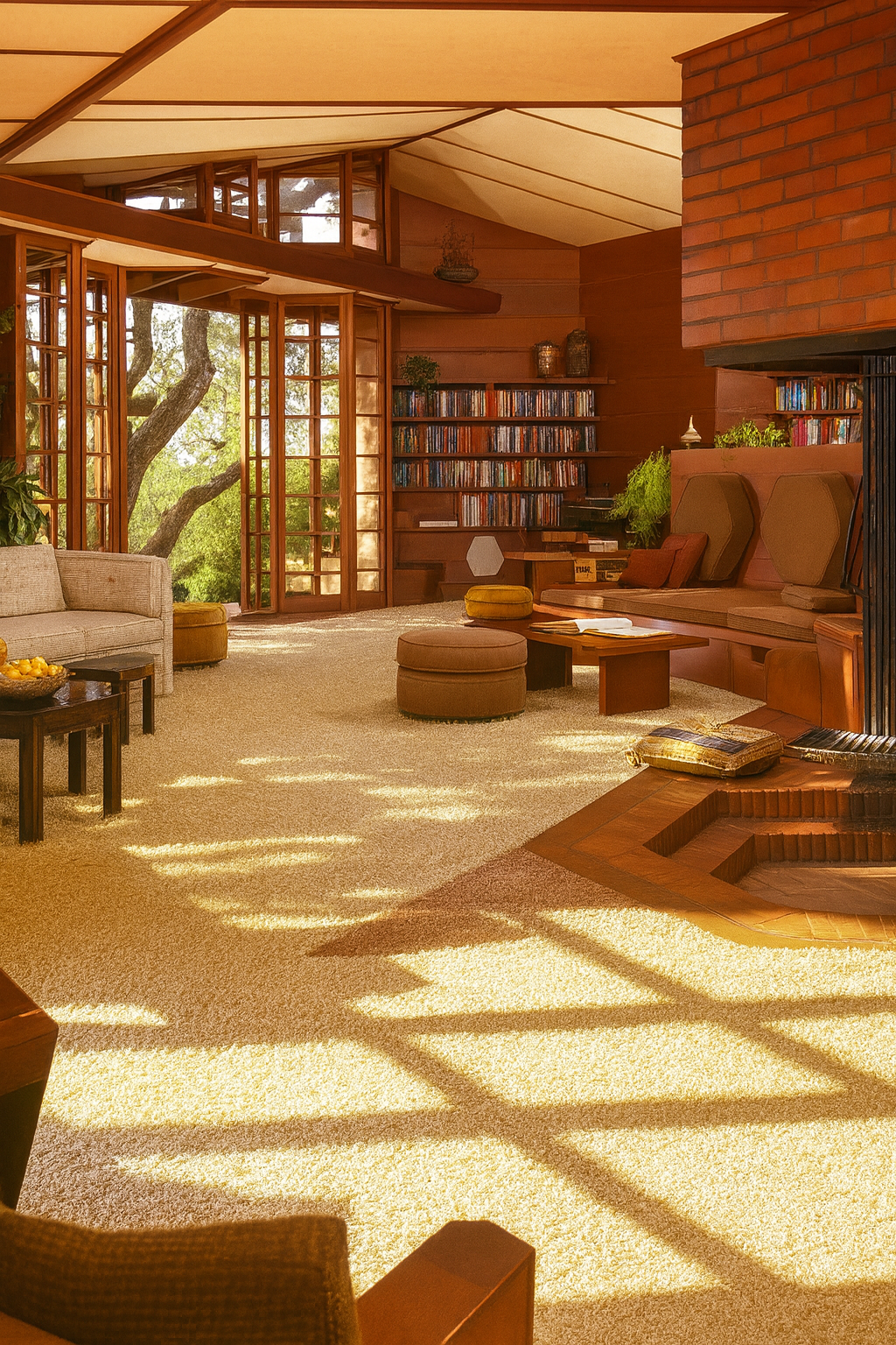 Natural Materials and Warm Textures: Mid-century modern design strikes a balance between new and old – sleek and organic. Alongside modern steel and glass, these homes feature plenty of natural materials. Think wood paneling (many Eichler homes have rich mahogany panel walls), stone or brick fireplaces, and terrazzo or concrete floors. The palette tends to be warm and earthy: unpainted redwood siding, stone accent walls, cork tiles, etc. This grounds the design in nature, preventing minimalism from feeling cold. Inside, mid-century interiors often included built-in furniture (bookcases, benches, room dividers) crafted from wood, which optimized space and kept the look cohesive. This focus on built-ins and simple materials resonates with today’s preference for uncluttered, high-quality interior design – it’s the opposite of the oversized, faux-ornate look of the later “McMansion” era. Mid-century homes were modest in size and purposeful in design, a concept many homeowners are returning to in pursuit of simplicity and authenticity.